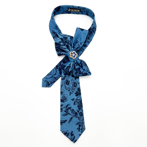 Elevate your style with our denim jacquard Ascot necktie, featuring a sophisticated floral pattern in solid blue. Adorned with a shimmering rhinestone flower, this exquisite accessory adds a touch of opulence to your ensemble. Meticulously crafted from premium silk fabric in a skinny men’s tie style, each piece is meticulously tied and hand-stitched to perfection. Effortlessly elevate your look with its ready-to-wear design, secured by a convenient magnet clasp. Redefine sophistication with every wear.