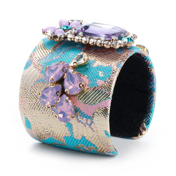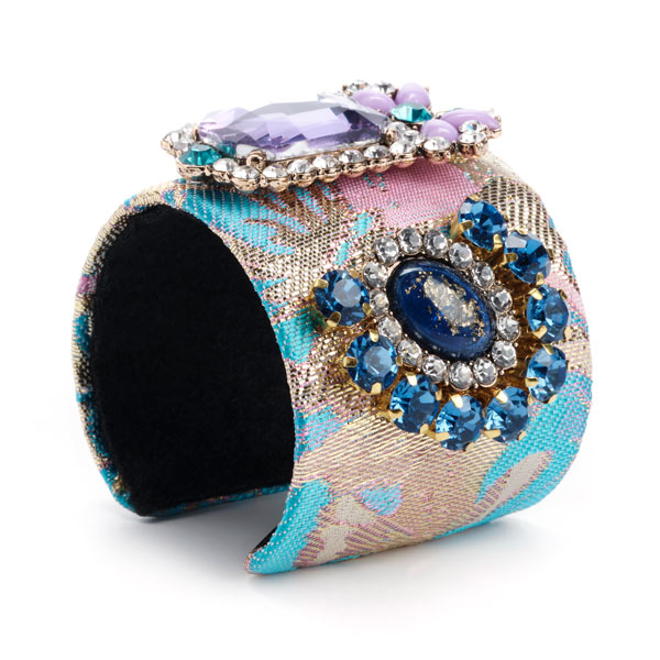 Gold-blue floral brocade metal cuff bracelet