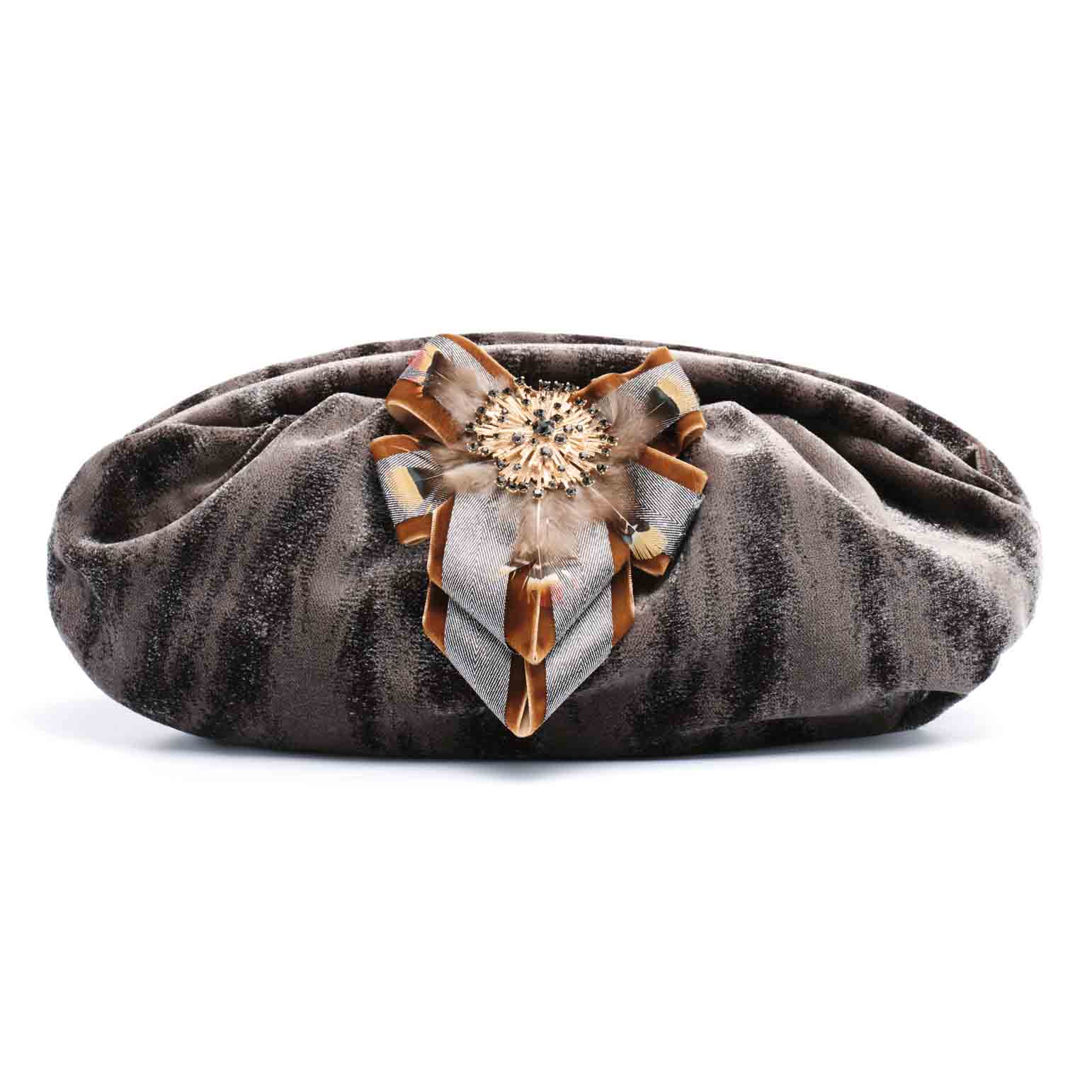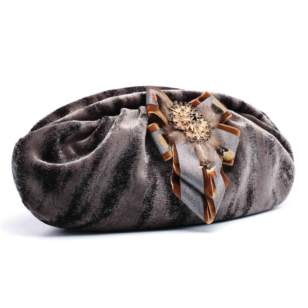 Puffy bag warm grey velvet fabric